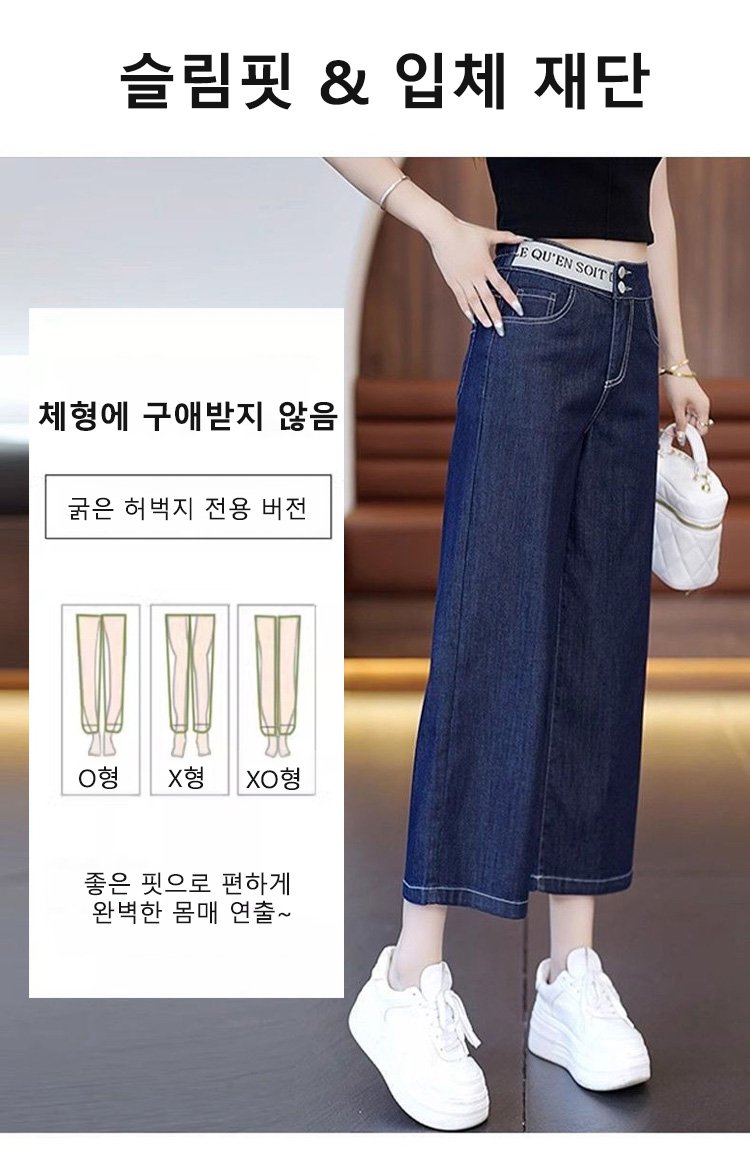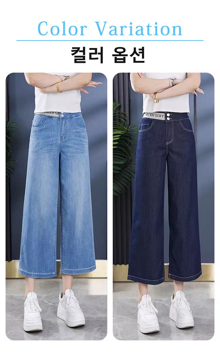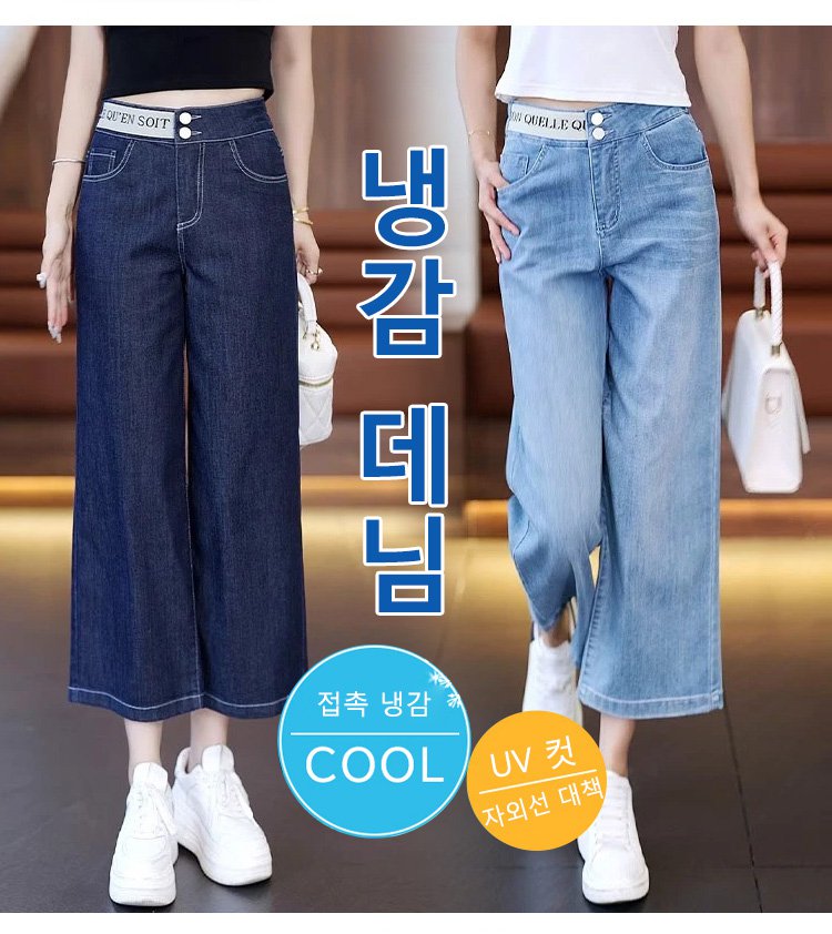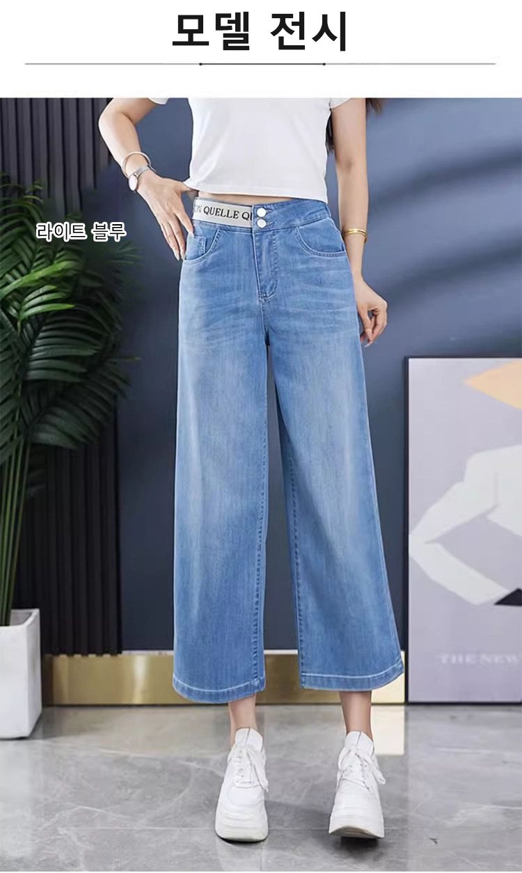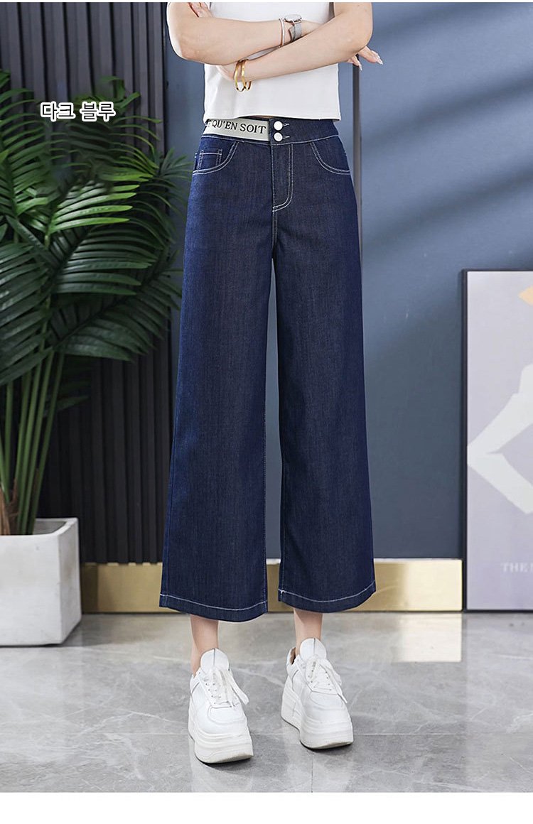 알파벳 허리밴드 8부 와이드 데님 팬츠