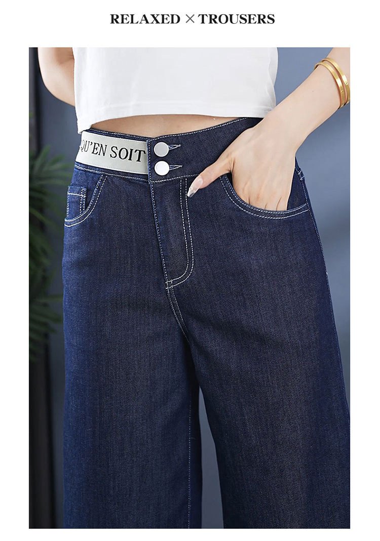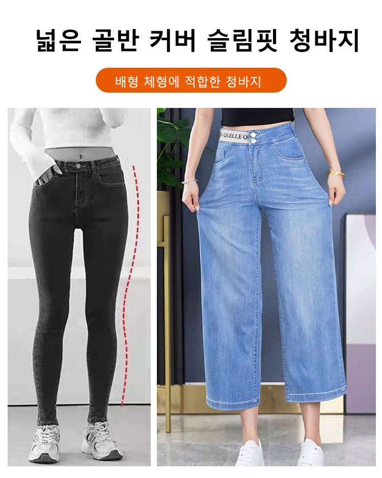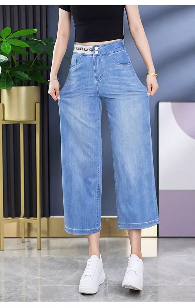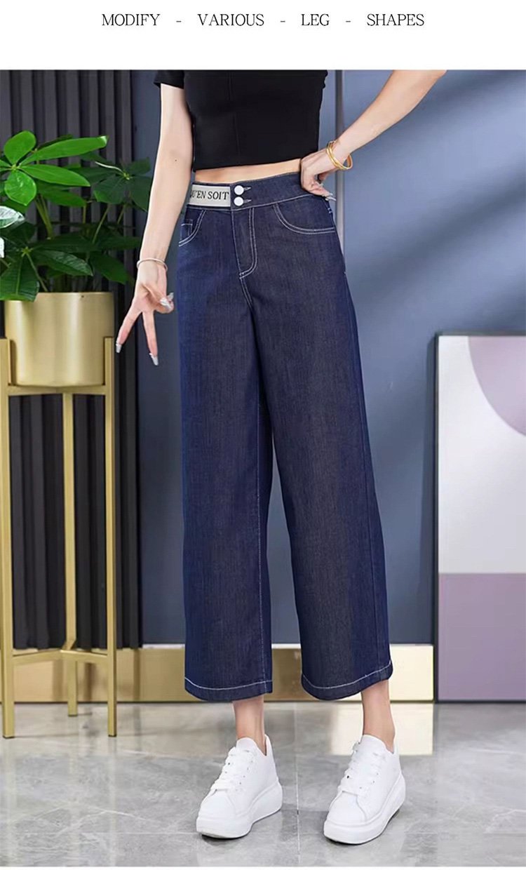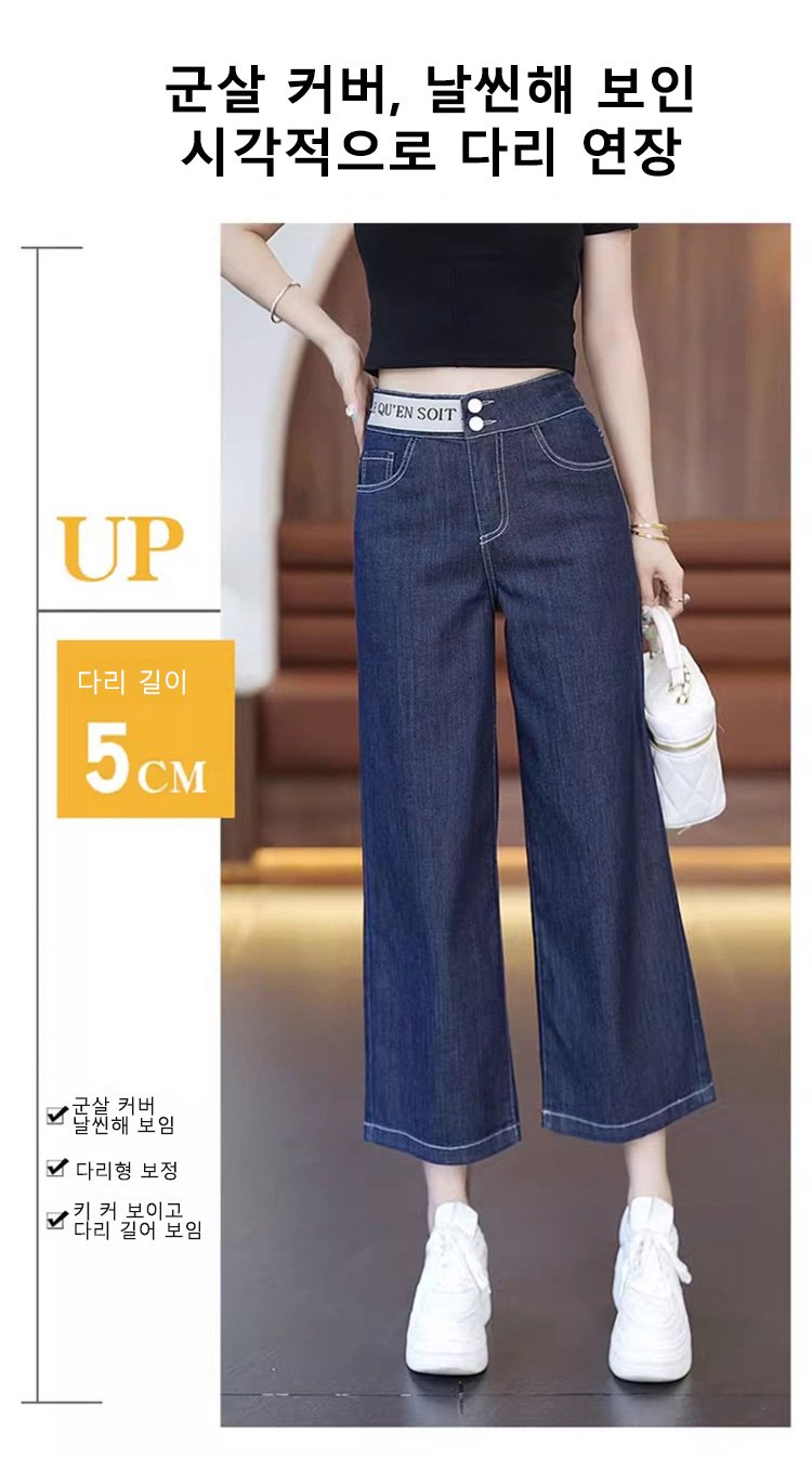 알파벳 허리밴드 8부 와이드 데님 팬츠